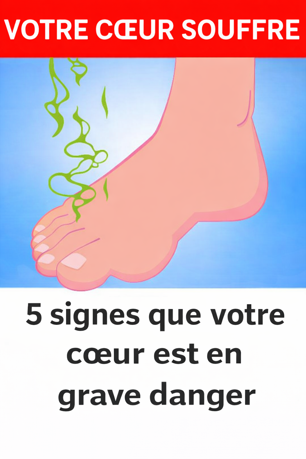 Les maladies cardiovasculaires demeurent la première cause de mortalité dans le monde. Il est donc essentiel d'être attentif aux signes que votre corps peut vous envoyer. Voici cinq indicateurs visibles pouvant suggérer un problème cardiaque. Prenez le temps de vous renseigner à leur sujet et d'en comprendre la signification afin de prendre les mesures préventives appropriées.