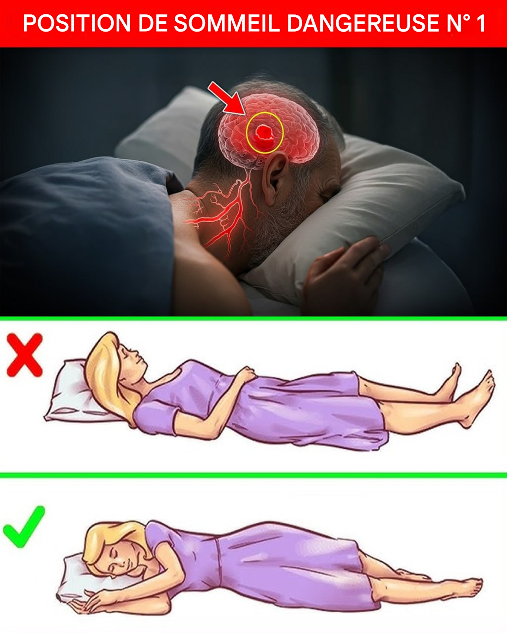 Imaginez Jane, une retraitée de 62 ans, se réveillant groggy avec un torticolis après avoir dormi toute la nuit sur le ventre. Elle ignorait que cette habitude pouvait augmenter son risque d'AVC. Une étude publiée dans le Journal of Neurology suggère que dormir sur le ventre (position ventrale) peut réduire le flux sanguin vers le cerveau en provoquant une torsion anormale du cou. Cela comprime les artères carotides, essentielles à l'apport de sang oxygéné. Chez les personnes âgées comme Jane, cela peut accroître le risque d'AVC, surtout si cette position est associée à des problèmes de santé comme l'hypertension. Mais la bonne nouvelle, c'est que de petits changements ont permis à Jane de se sentir plus alerte et plus en sécurité. Vous voulez savoir ce qu'elle a changé ?