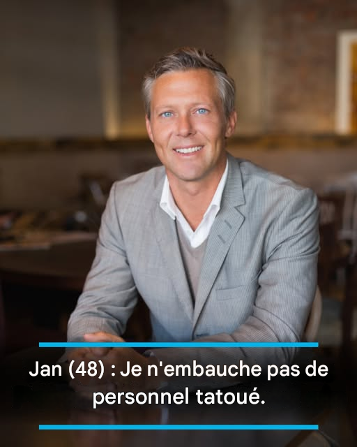 « Les tatouages ne correspondent tout simplement pas à l’image que je souhaite projeter », affirme-t-il sans hésiter. « Je les trouve vulgaires. Mes clients paient un prix élevé pour une soirée de cours. Cela commence par ce qu’il y a dans leur assiette, mais aussi par la personne qui la sert. »