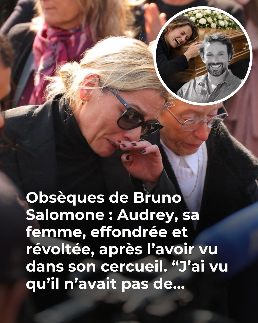 PHOTO - Ce lundi 23 mars, les obsèques de Bruno Salomone, décédé le 15 mars dernier, se sont déroulées en l’église Sainte-Anne de Polangis, à Joinville-le-Pont. À la sortie de la cérémonie, Audrey, la femme de l’acteur, ainsi que sa mère, sont apparues effondrées. Une image déchirante.