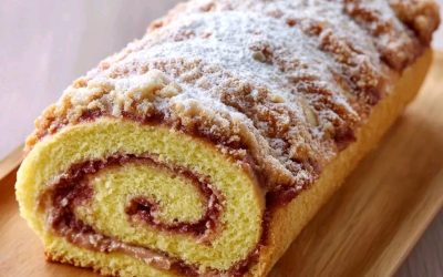 Bûche roulée amande & crème praliné noisette 👥 Pour : 8 personnes ⏱️ Temps de préparation : 35 min (+…