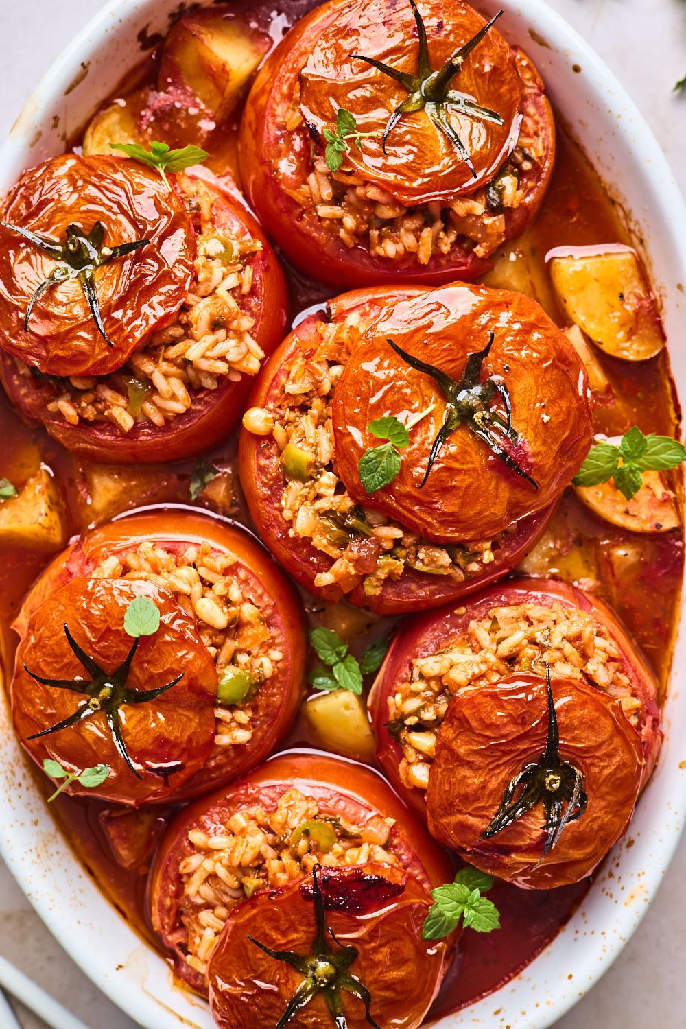 Servez les tomates tièdes ou à température ambiante avec du pain pita ou une salade grecque.